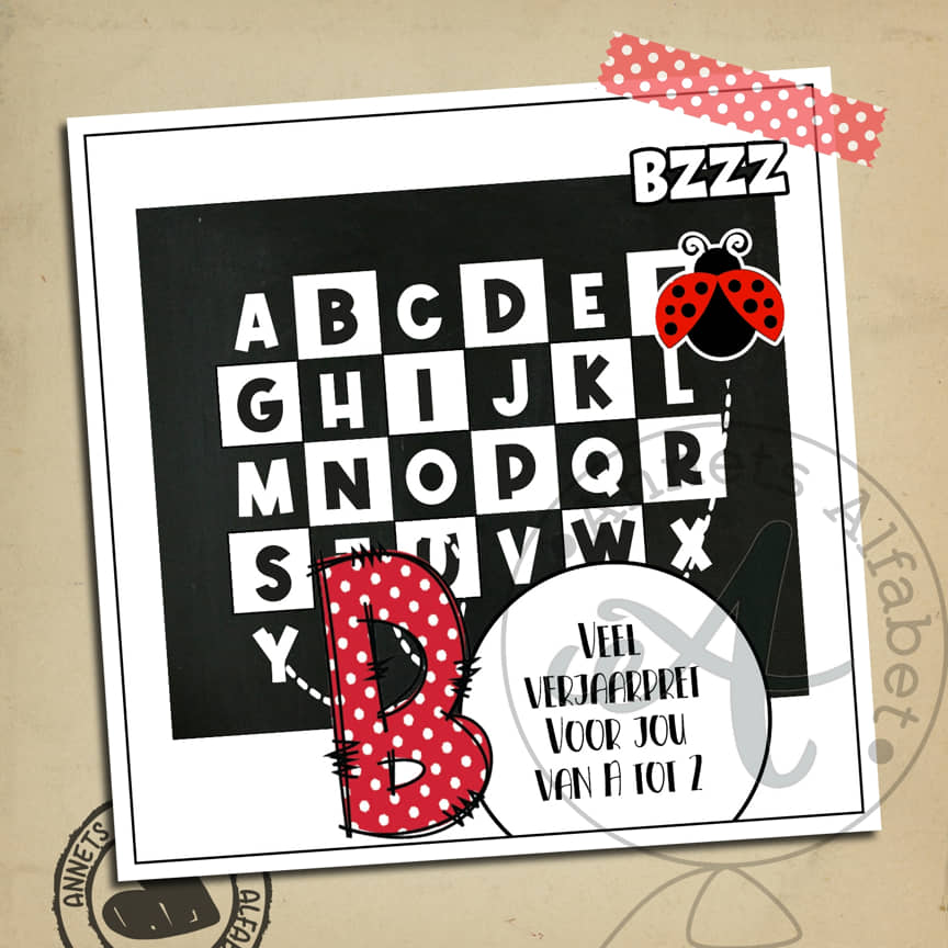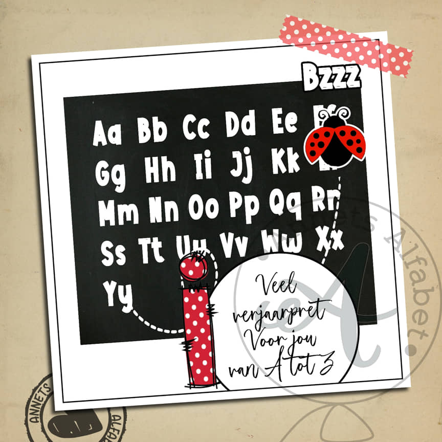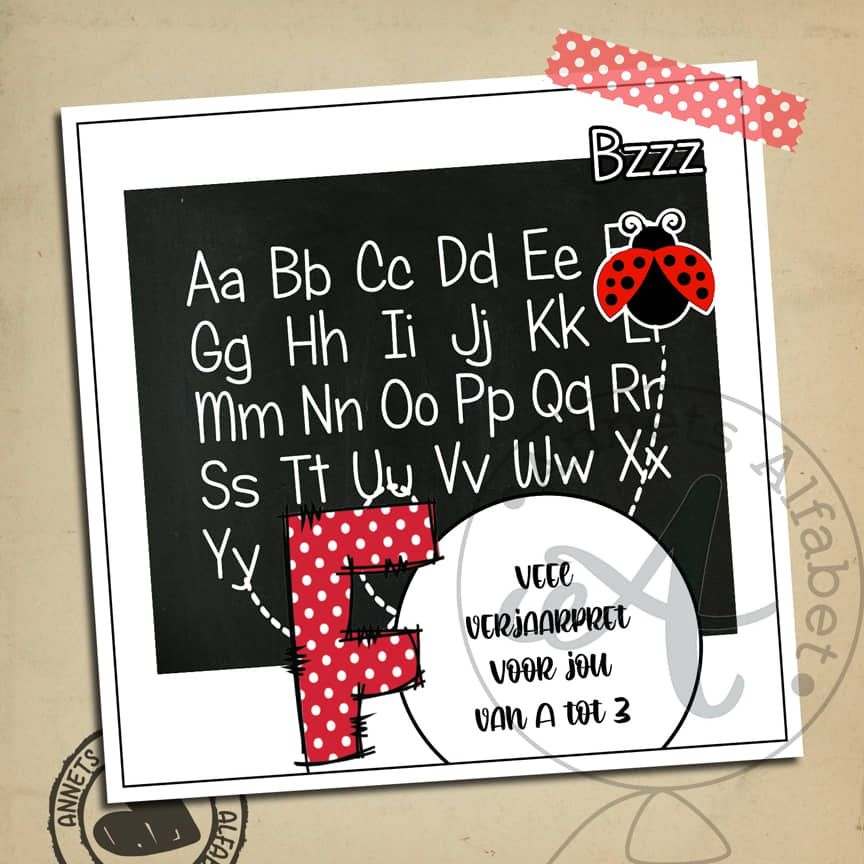 Dit is de serie met het hele alfabet met een alfabetje op de achtergrond. Wie verras jij op haar verjaardag?